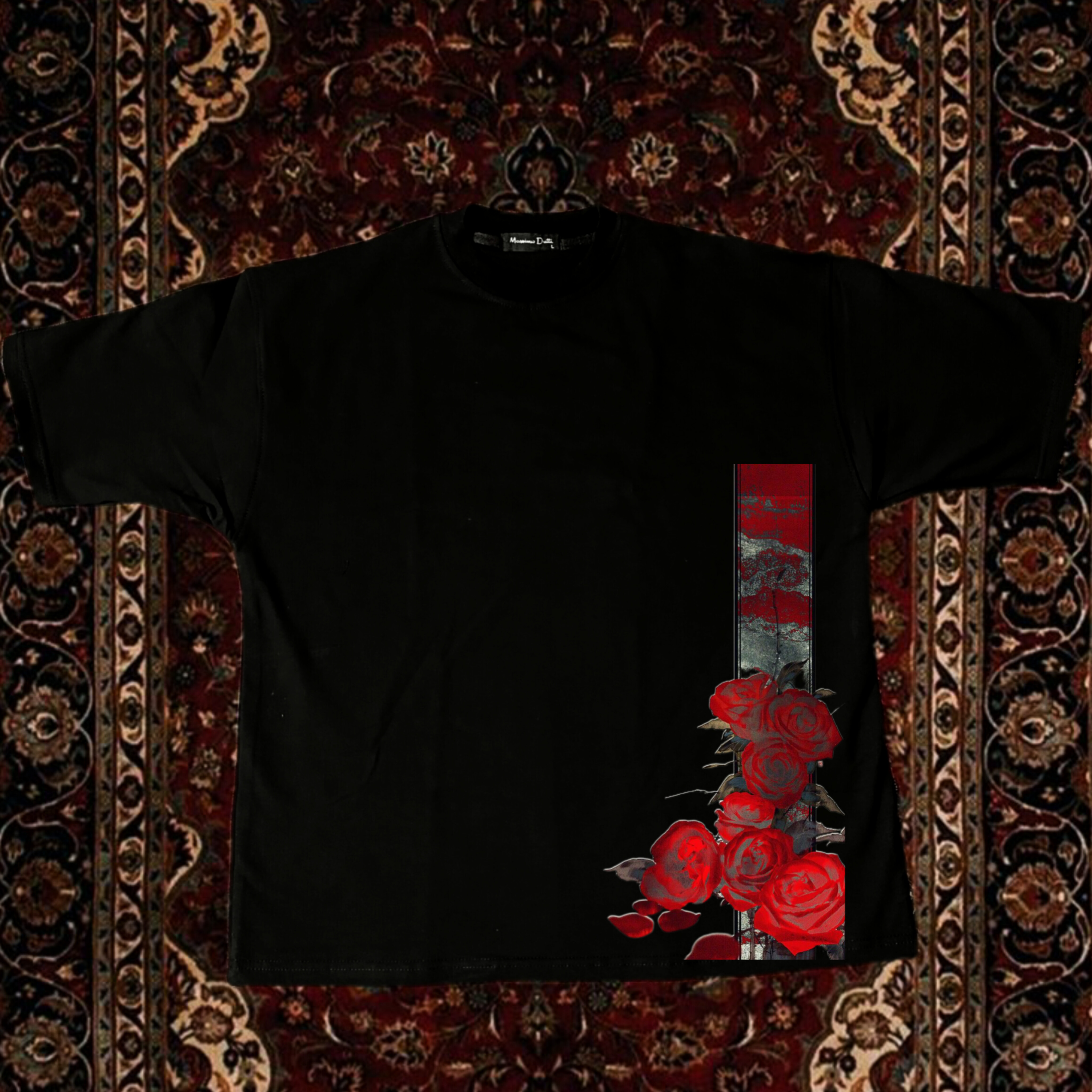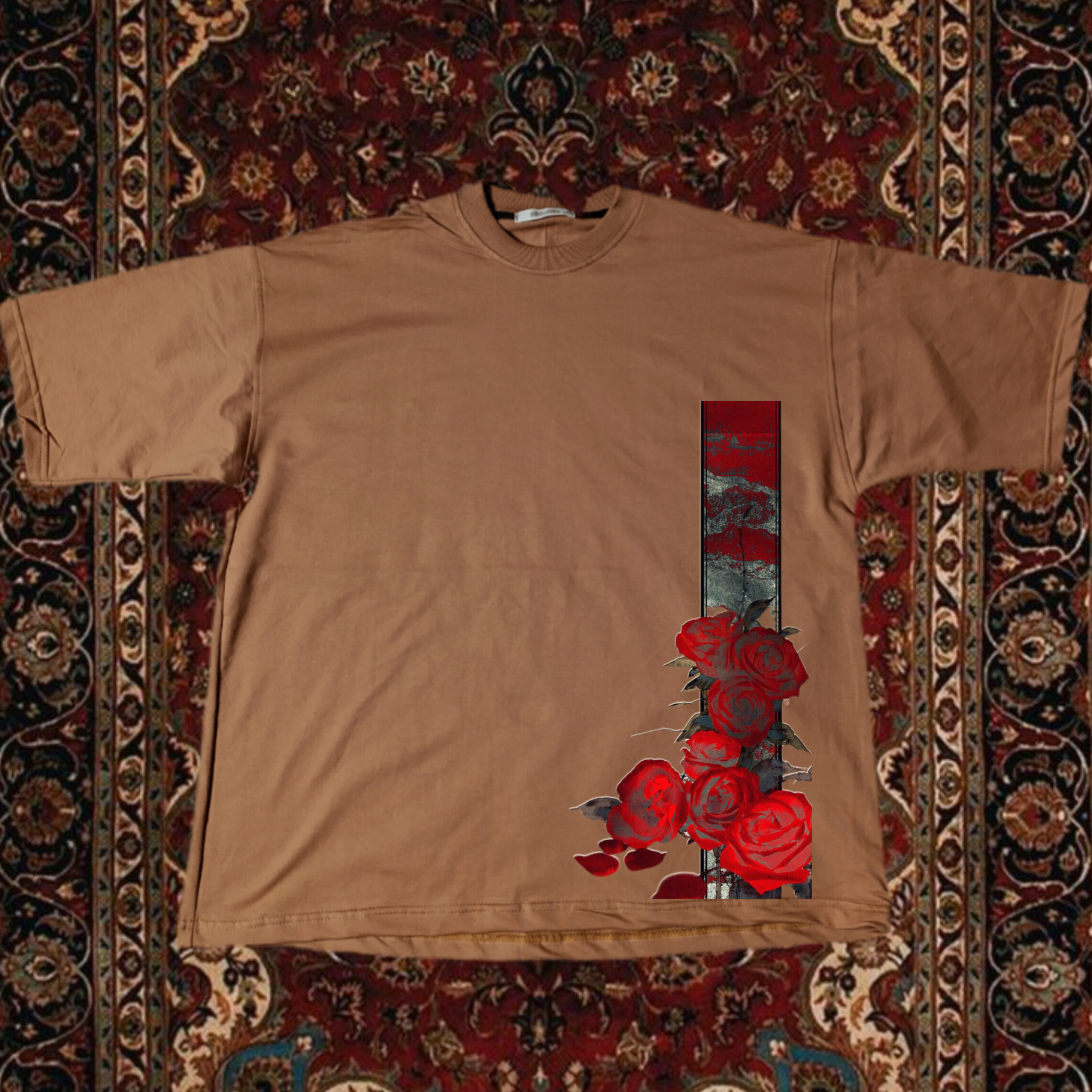 تیشرت دونخ پنبه باکسی طرح (گل رز)
